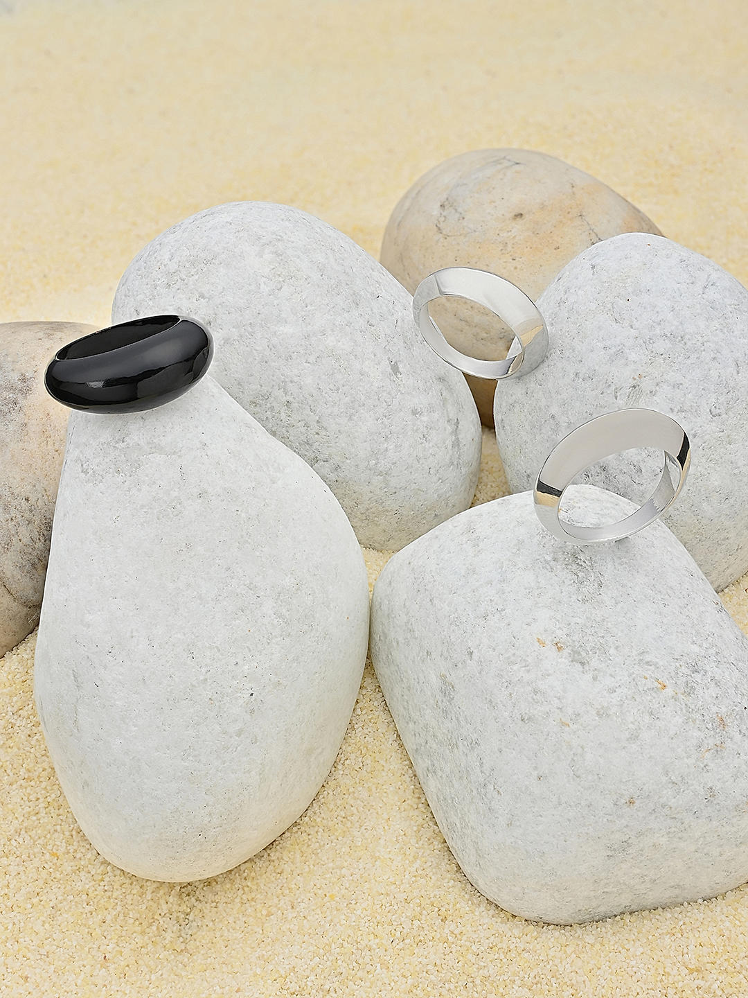 ₹530₹1,887Urban Edge Black Silver Ring Trio (Set of 3)